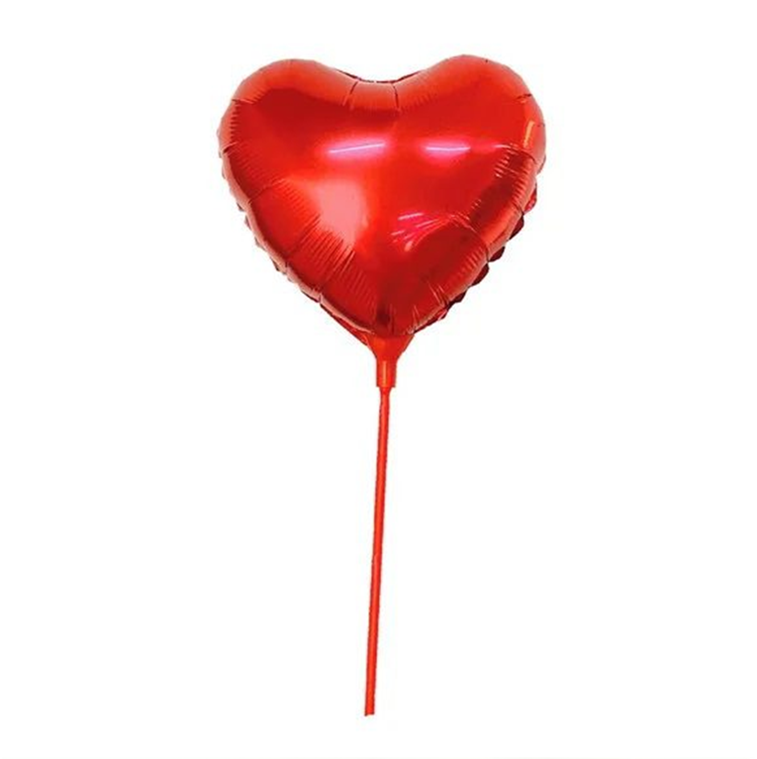Balão Metalizado Coração Vermelho Com Vareta 1 Unidade